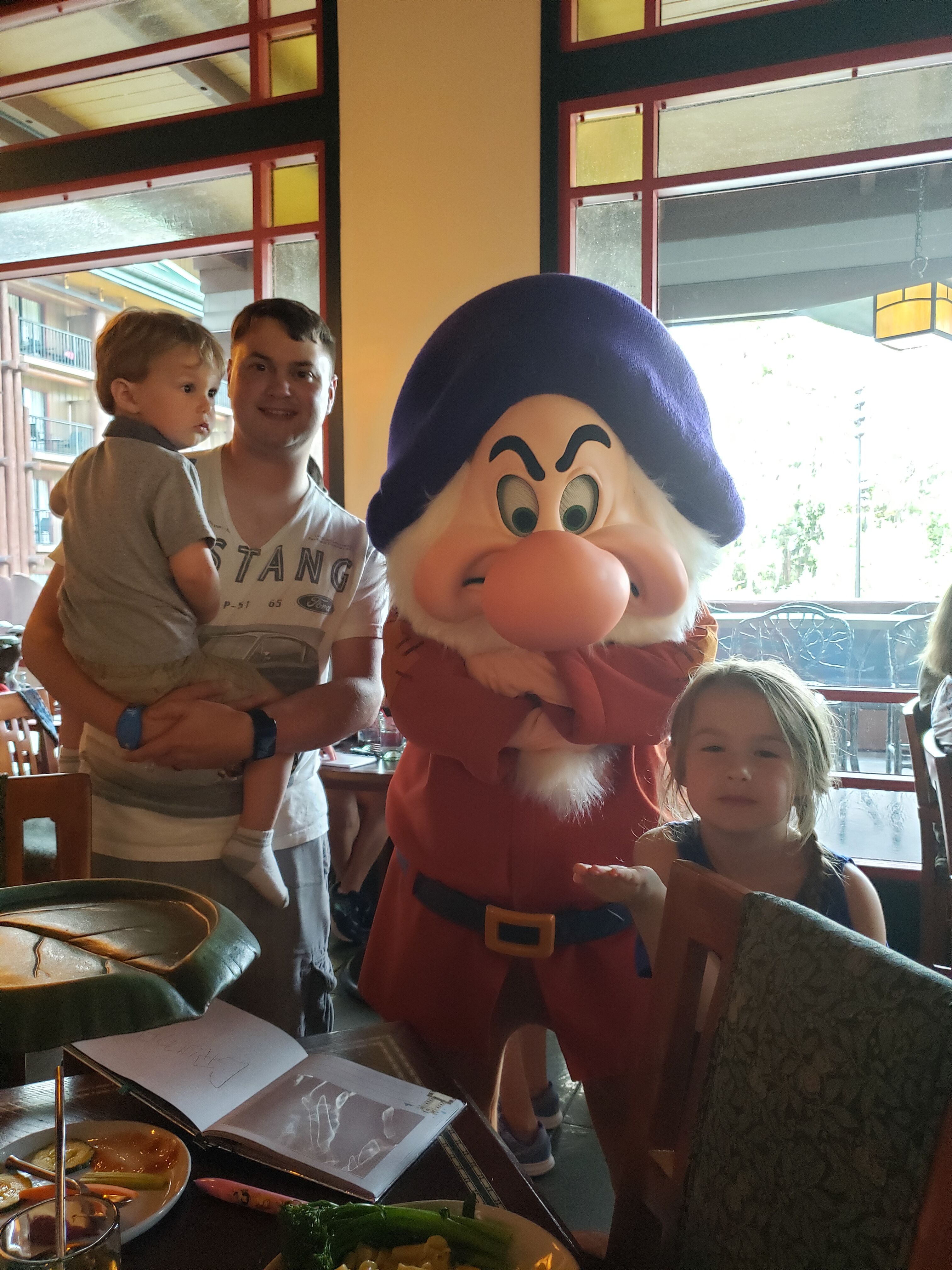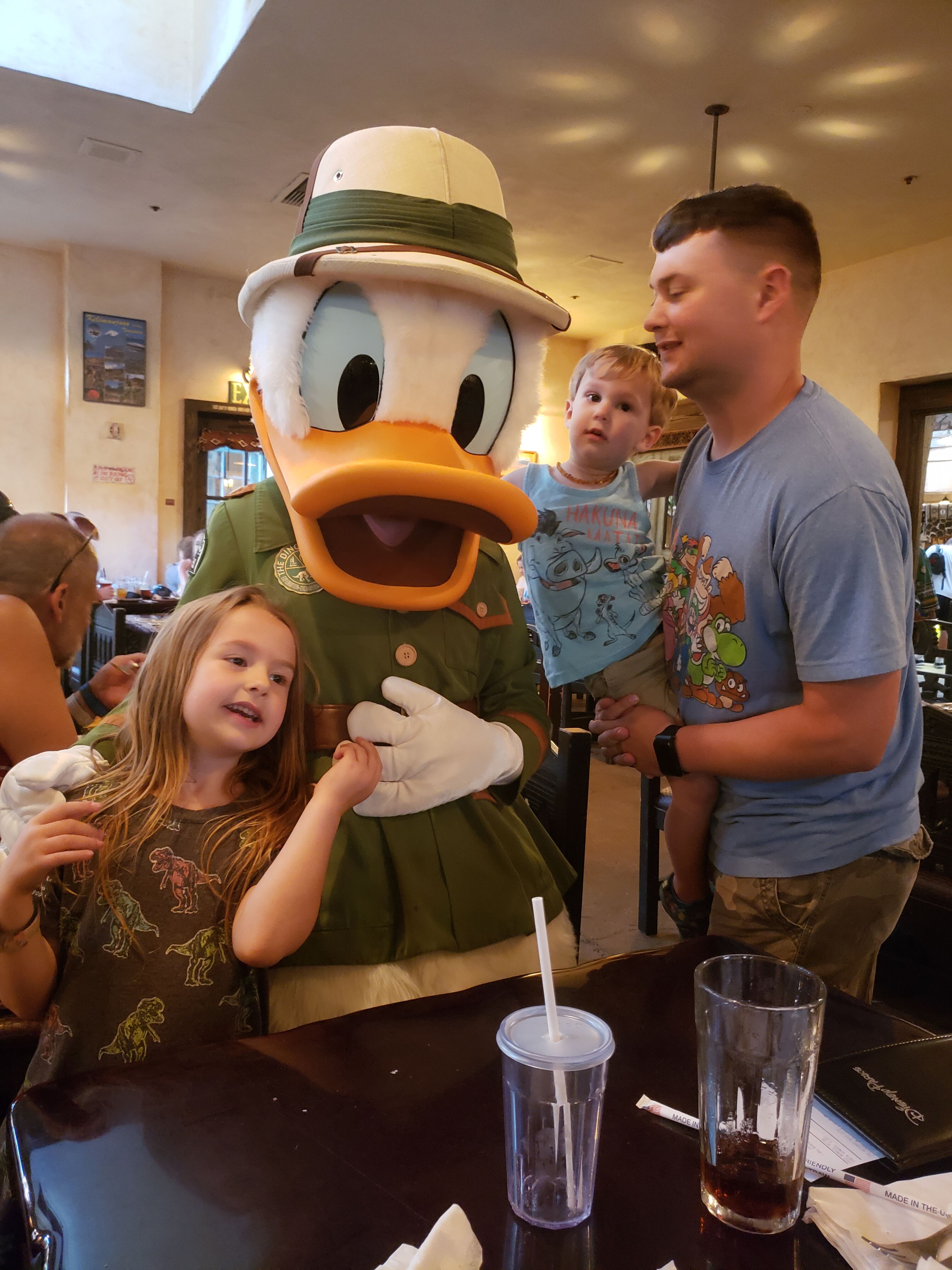 Callen wanted to hug Donald, so when Donald came back a second time he got to give him a hug. Belle was excited to tell him all about her desserts. Tusker House was one of the meals we didn’t feel the automatically added gratuity was earned. We’ve eaten here in the past and had zero issues, so I’m sure, as with anywhere, it can be hit or miss.