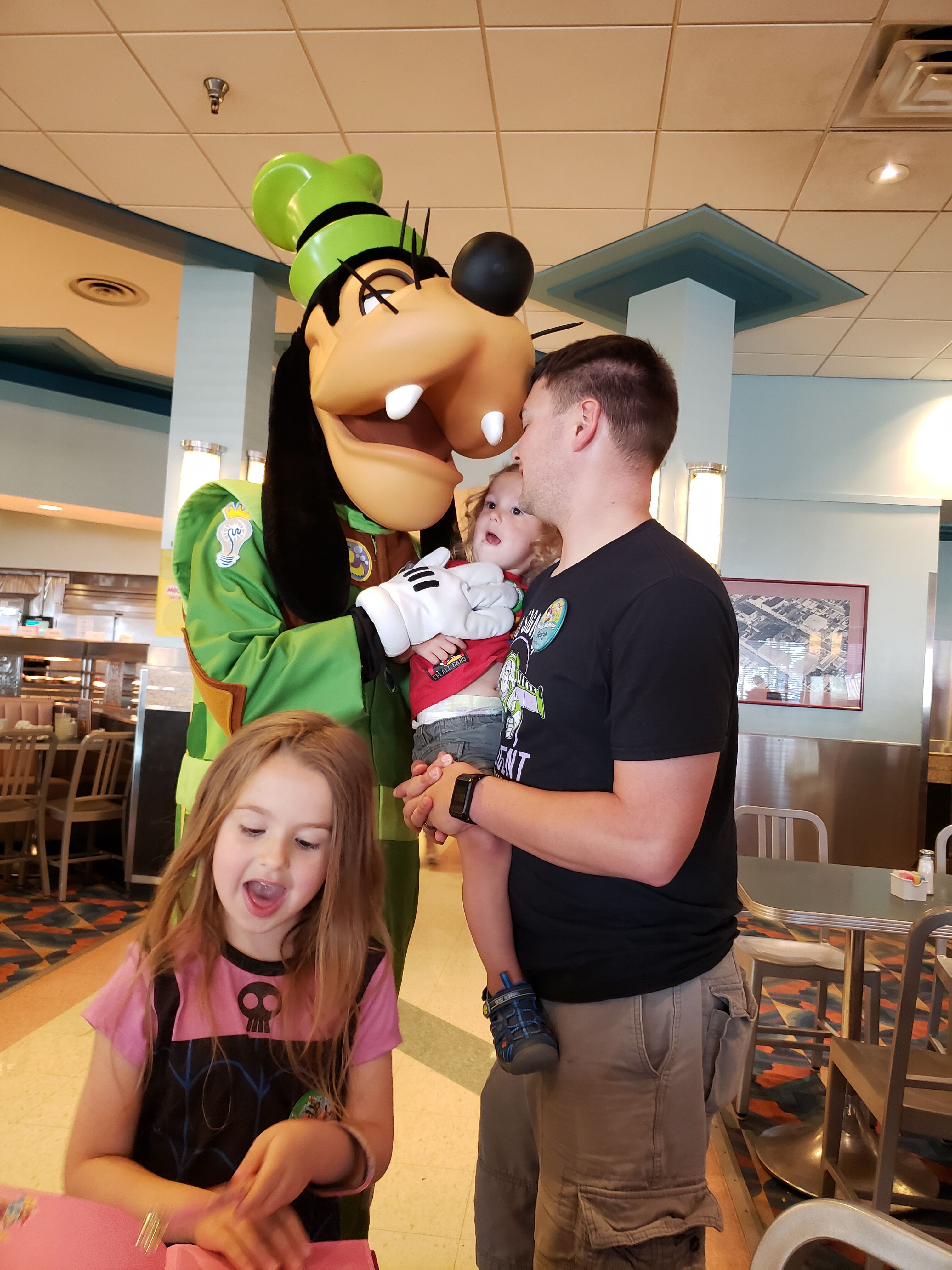 Our first meal with our Tables in Wonderland card at Hollywood & Vine in Hollywood Studios at the Disney Jr. Play & Dine breakfast. This is the first time Callen “hugged” a character!!! He’s been afraid of them all for months!